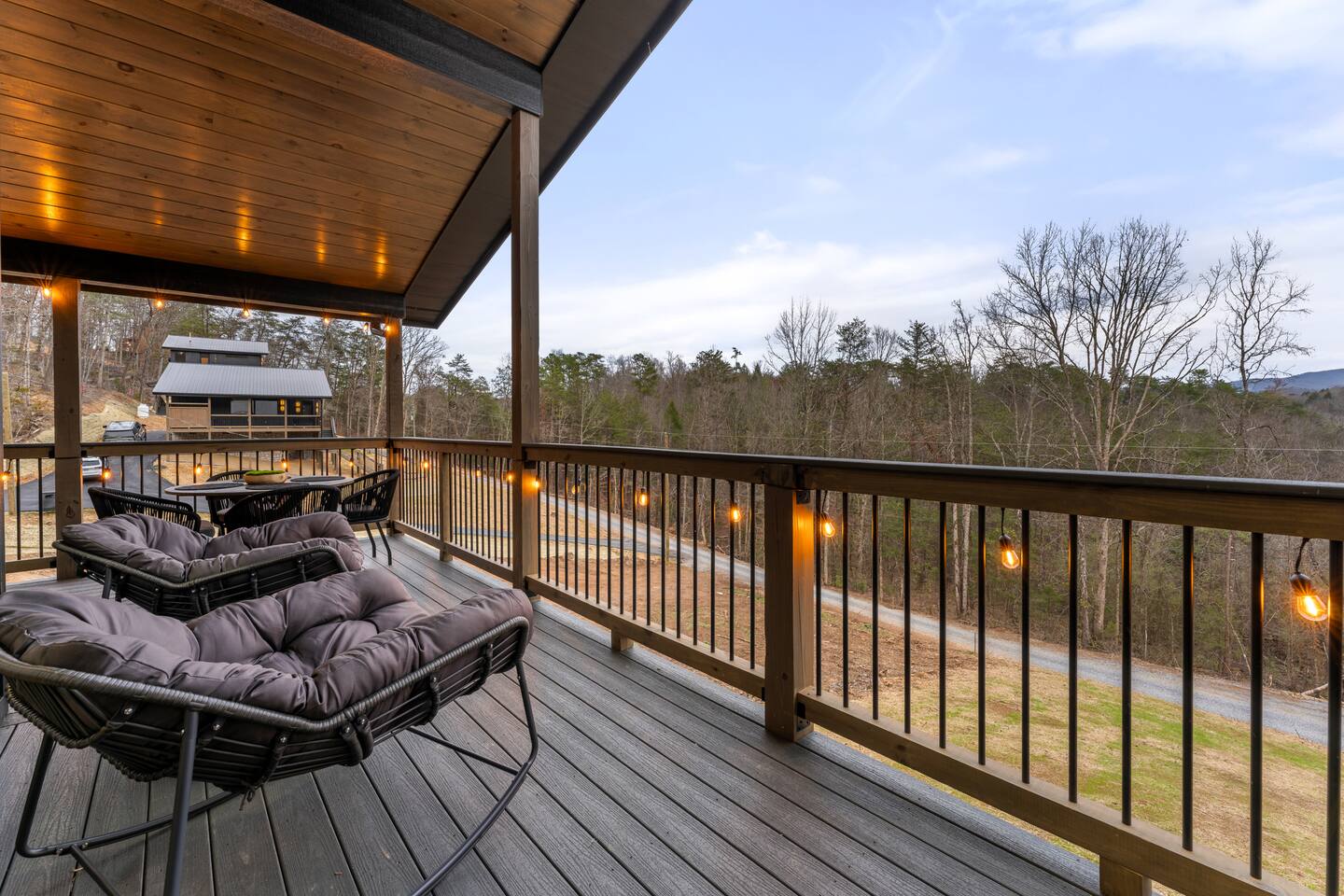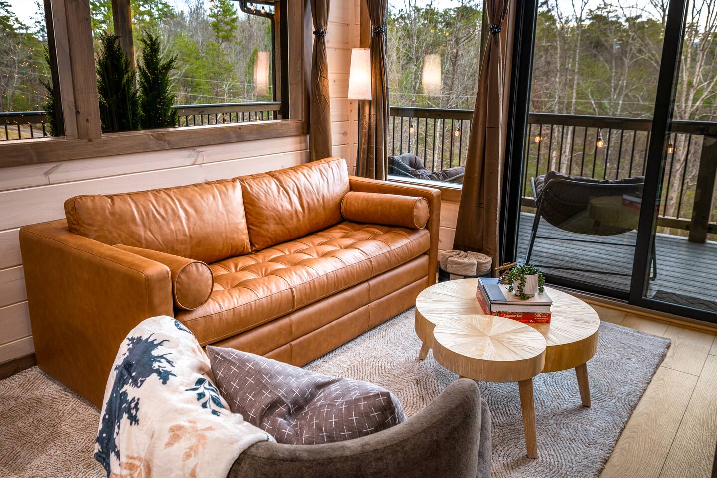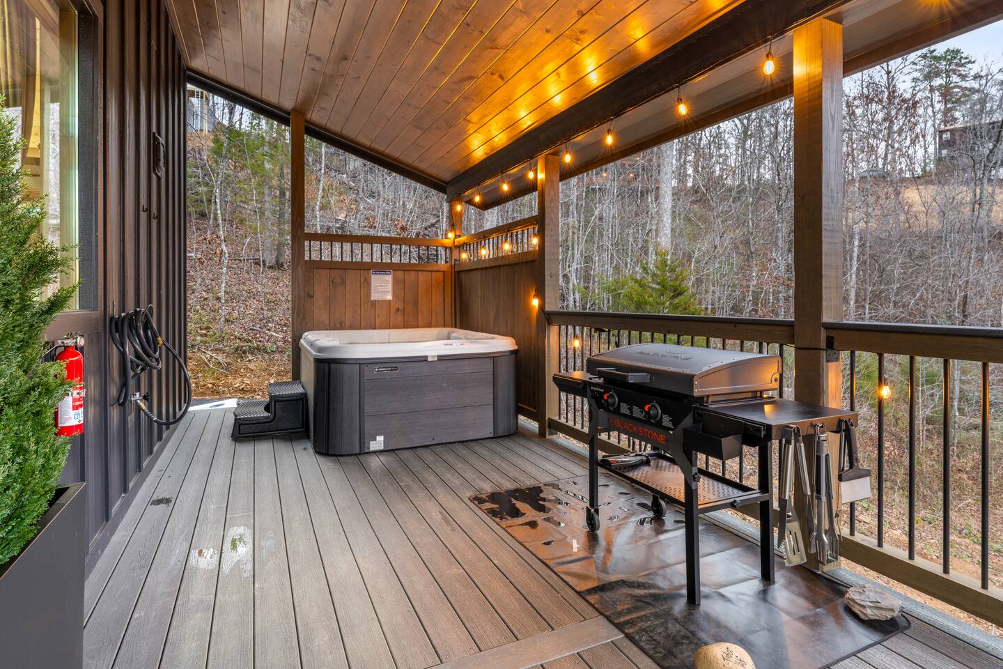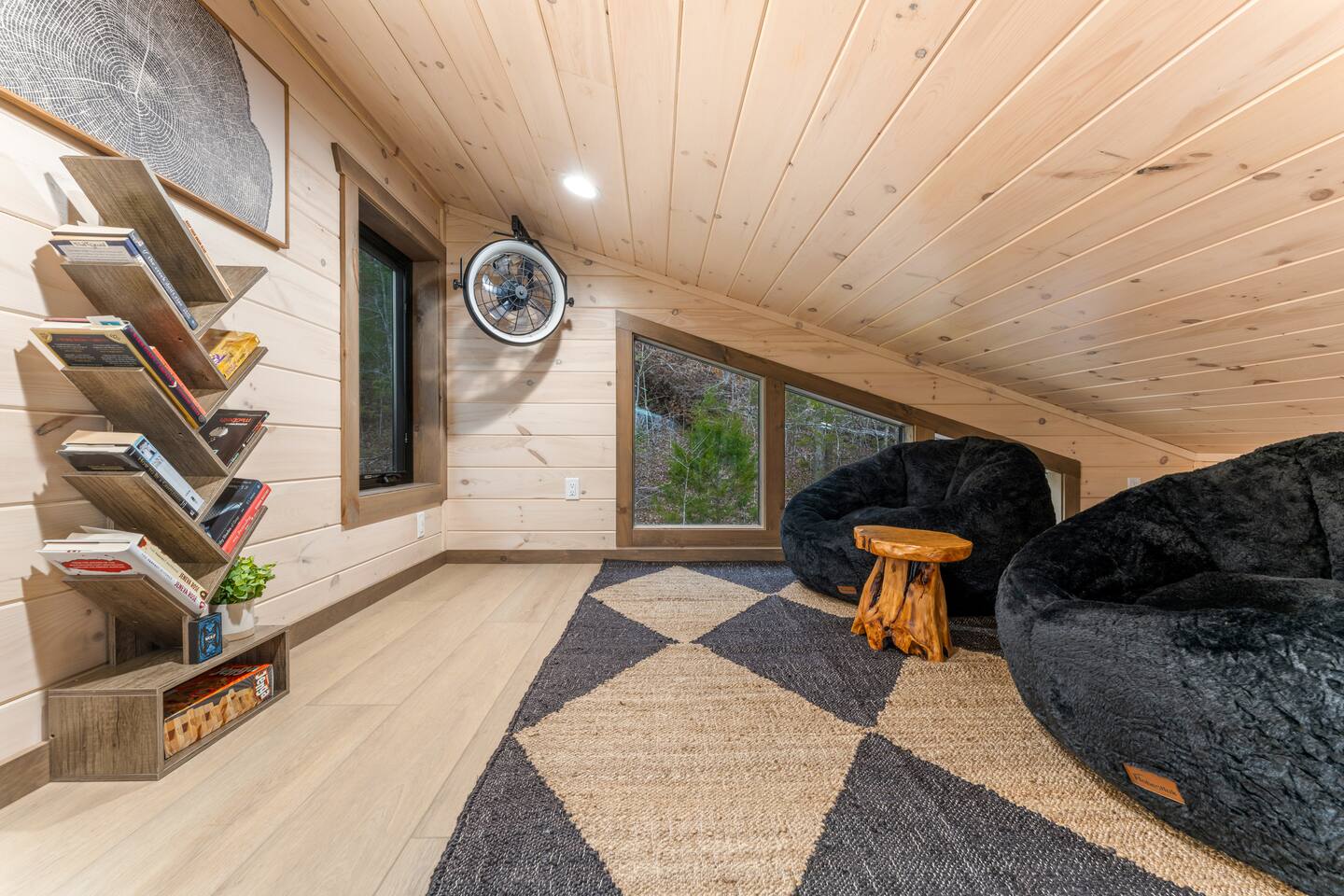 Designed for couples, this romantic Smoky Mountain cabin blends modern comfort with cozy mountain charm. Perfect for honeymoons, anniversaries, or a peaceful escape near Pigeon Forge and Gatlinburg—created for relaxation and connection. The cabin can also accommodate guests traveling with 1-2 children(we have a plush leather pull out sofa). Reaching the cabin is easy- and the peaceful drive into the cabin is part of the charm. 4 wheel drive NOT needed. The Great Smoky Mountains National Park, Pigeon Forge, and plenty of hiking trails are all nearby and will leave you in awe with their rich natural treasures. ✔ Newly built in 2025 ✔ Electric vehicle charger ✔ Propane fire pit ✔ Private patio with mountain views ✔ Hot tub and robes ✔ Outdoor Blackstone grill ✔ Outdoor dining table and chairs ✔ Rocking chairs ✔ King bed & one pull out sofa bed ✔ Two large smart TV's ✔ Wi-Fi ✔ Washer Dryer ✔ Electric fireplace ✔ Location: ✔ Gourmet Kitchen ✔ Privacy ✔ Upstairs loft for reading and relaxation See more below! ★ LIVING ROOM ★ Make yourself a hot cup of coffee and cozy up next to the electric fireplace in the living room. Watch a movie with your loved one or retreat to an imaginary world by reading a book. The living room offers all comforts needed to unwind and feel at home. ✔ Comfortable Leather Sofa with Pillows ✔ Pull out Sofa for Children or Extra Guests ✔ Smart TV with Netflix, Hulu, Etc. ✔ Indoor Fireplace ✔ Puzzle ✔ Reading Lamp ✔ Access to the Private Patio ★ KITCHEN & DINING ★ The kitchen is a cozy space where you can share a drink and enjoy intimate conversations while your meal comes together. The cabin offers a sleek four burner gas stove, oven, microwave and toaster. The charming setup allows your designated chef to create a delicious meal, adding to the warmth of your time together. ✔ Microwave ✔ 4 Burner Gas Stove ✔ Dishwasher ✔ Gas oven ✔ Toaster ✔ Coffee Bar (12 Single Cups and Classic Pot Coffee Brewing) ✔ Refrigerator/Freezer ✔ Sink - Hot & Cold Water ✔ Refrigerator and Freezer with Ice Maker and Filtered Water ✔ Glasses ✔ Silverware ✔ Pots & Pans ✔ Cookie Sheets Once everything is done and ready, serve it at the lovely bar table opposite the kitchen. We provide 12 Keurig singles and a starter brewed coffee kit for your stay. As mentioned before, you can also choose to eat on the back deck and marvel at the views and serene sounds of nature no restaurant can match. ★UPSTAIRS LOFT★ The upstairs loft is a quiet space to read and enjoy a book, or simply have some much needed rest. ✔ Jenga ✔ Deck of Cards ✔ Assortment of Books ✔ Bean bags ★ SLEEPING ARRANGEMENTS ★ ♛ King-Size Bed ♛ Night Stands with Reading Sconces ♛ Premium Pillows, Linens, and Sheets ♛ Queen Size Pull Out Sofa Bed The king size bed (Nectar Luxe Hybrid Mattress) and premium linens and sheets will make you feel as if you are sleeping on clouds. ★ BATHROOM★ The cabin features a full bathroom. It is equipped with essential toiletries, so you don't need to overpack. Keep in mind, there is only a starter set of toiletries (shampoo, conditioner, shower gel, hand soap, makeup wipe). ✔ Walk-In Shower With Dual Shower Heads ✔ Mirror ✔ Toilet ✔ Towels ✔ Hair Dryer ✔ Essential Toiletries ✔ Stand Alone Bath Tub ★ OUTDOOR AREAS ★ Peace and quiet will envelop you during your stay. In the mornings, quietly sip your coffee on the front back deck. Unwind in the luxurious hot tub after a day of hiking or exploring the surrounding area . Enjoy plush egg chairs on your private balcony or enjoy the quiet romantic fire pit with mood lighting. Enjoy grilling on the backstone grill and serve it up to your loved ones on the private balcony. ✔ Back Deck (Luxury Hot Tub, Romantic Lighting, Plush Egg Chairs, Blackstone Grill, Dedicated Dining Table and Chairs) ✔ Fire Pit and Adirondack Chairs ✔ Guest access: Smart Lock with Unique Door Code ✔ Hot Tub The cabin is exclusively yours, without interruption during your stay, so relax, unwind, and make yourself at home. Other than the already mentioned amenities, our home is also equipped with: ✔ Reliable Wi-Fi ✔ Air Conditioning ✔ Heating ✔ Free Parking ✔ EV Car Charger(Please bring your own adapter) Other things to note: 1. This rustic cabin is located in the woods, immersed in nature, and you will likely see and hear woodland critters. This includes bugs! We do have pest control, however. 2. Bears are infrequent visitors of the cabin but please be aware! While they are truly an unforgettable sight to see, you will need to be sure you keep your car free of food and doors locked AT ALL TIMES. Do not approach or feed the bears. 3. This community is very quiet and has lots of character. Please enjoy it! ★ ARRIVAL INSTRUCTIONS ★ Simply input your personalized code to the smart lock and enjoy the cabin. ★ NO PETS ALLOWED★ We love those little (and not so little) pets. Sadly, our home is not suitable to accommodate them. If you sneak in a pet, you will be charged an additional $250 and asked to leave. ★ NO SMOKING INSIDE ★ Please refrain from smoking inside the home! Any smoking evidence will result in a $1000 fee for odor removal, and furniture cleaning. ★ NO PARTIES/EVENTS ★ We kindly ask you to treat our home as your own to preserve its pristine condition for future guests and your return visits. We encourage all of our guests to purchase trip insurance. Highly advised. It is the guest's responsibility to purchase trip insurance. By booking our cabin you accept our cancellation policy.