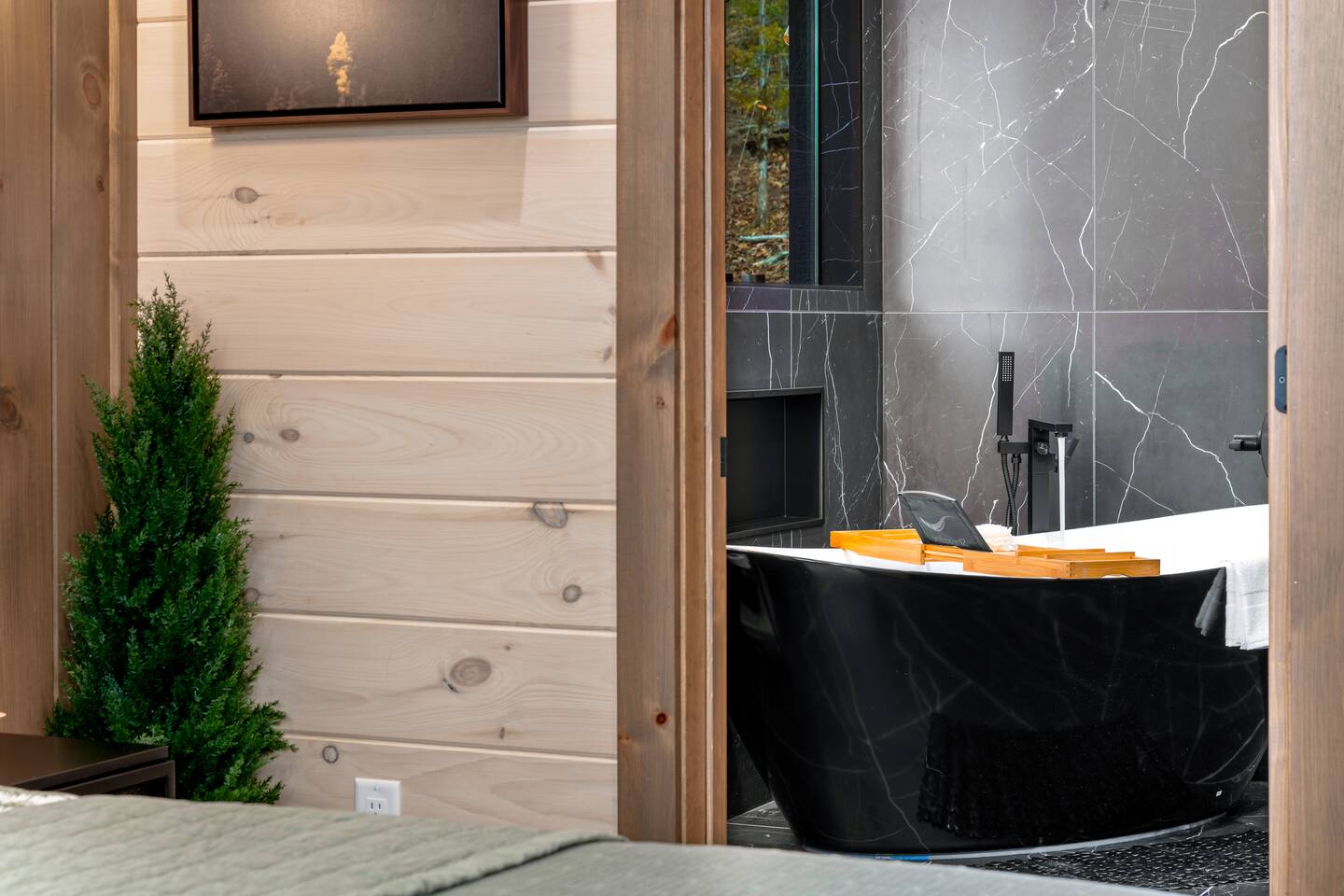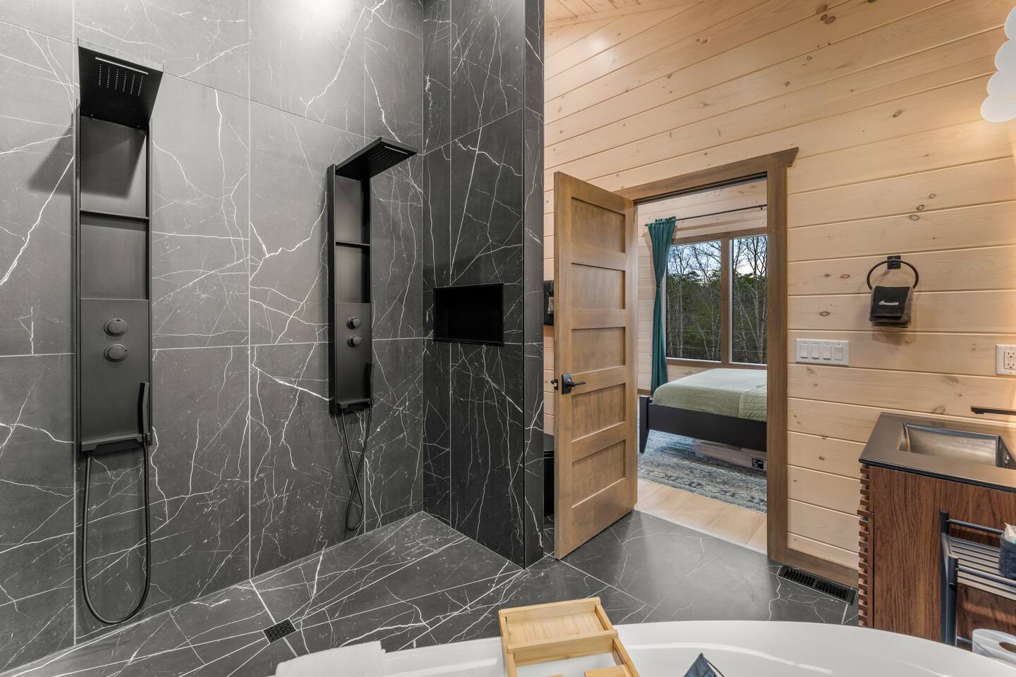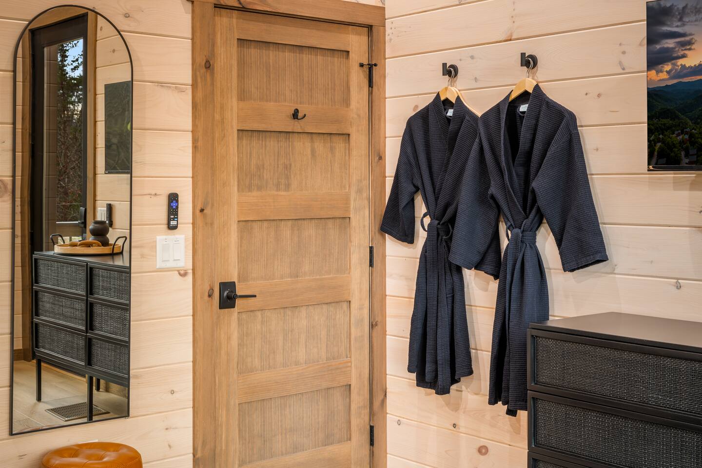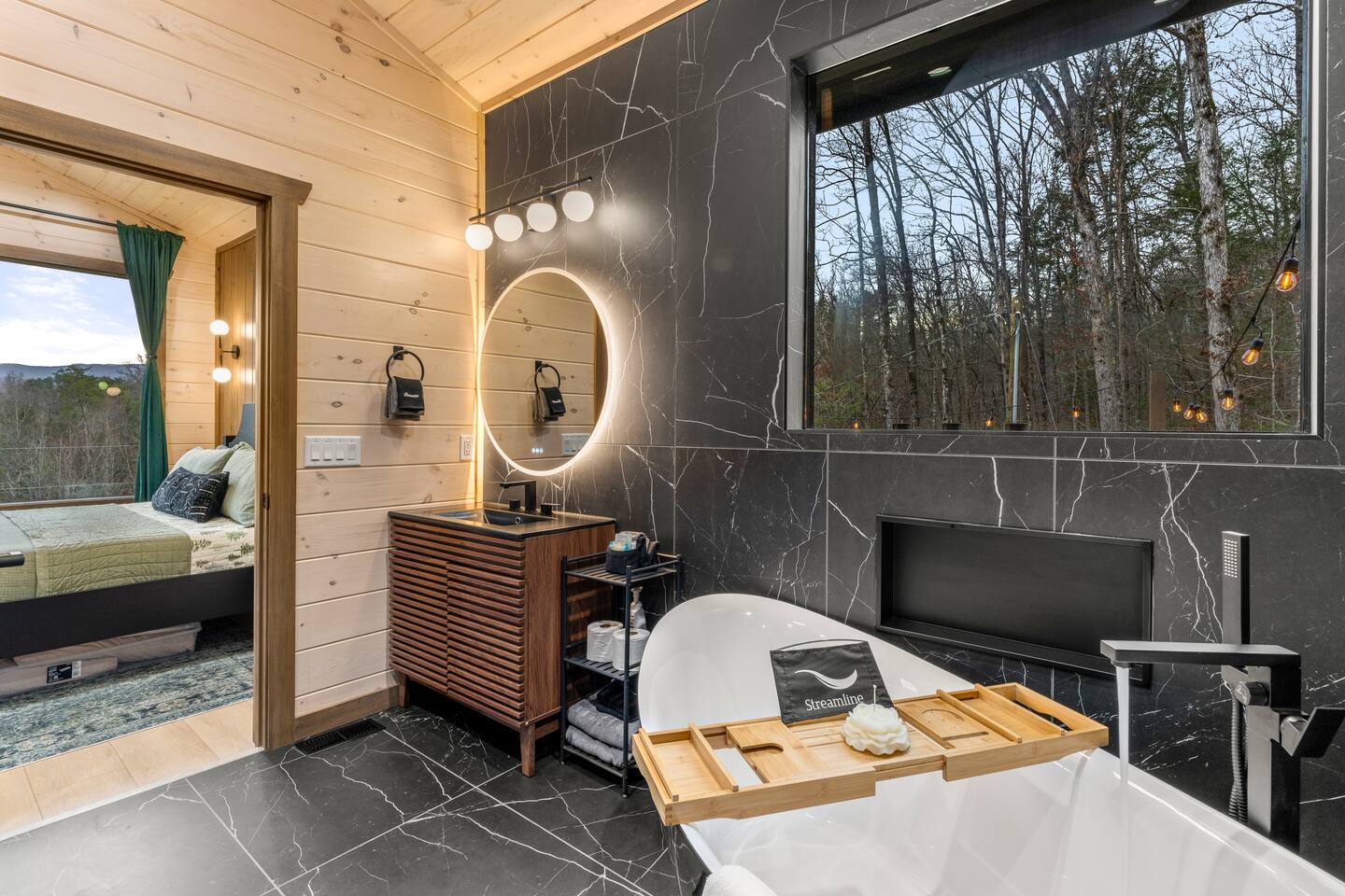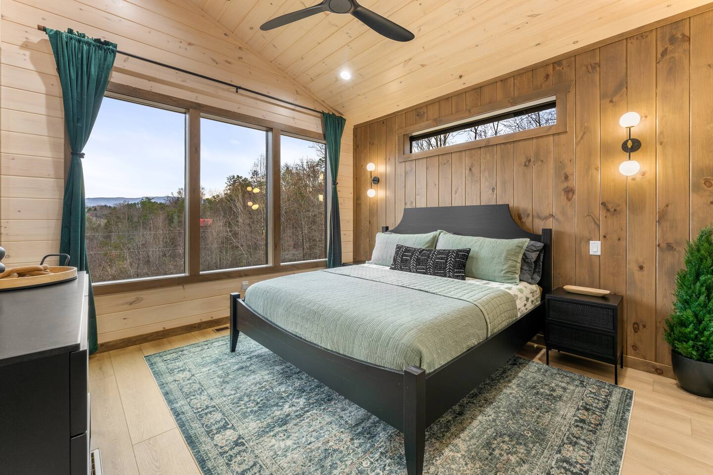 Designed for couples, this romantic Smoky Mountain cabin blends modern comfort with cozy mountain charm. Perfect for honeymoons, anniversaries, or a peaceful escape near Pigeon Forge and Gatlinburg—created for relaxation and connection. The cabin can also accommodate guests traveling with 1-2 children(we have a plush leather pull out sofa). Reaching the cabin is easy- and the peaceful drive into the cabin is part of the charm. 4 wheel drive NOT needed. The Great Smoky Mountains National Park, Pigeon Forge, and plenty of hiking trails are all nearby and will leave you in awe with their rich natural treasures. ✔ Newly built in 2025 ✔ Electric vehicle charger ✔ Propane fire pit ✔ Private patio with mountain views ✔ Hot tub and robes ✔ Outdoor Blackstone grill ✔ Outdoor dining table and chairs ✔ Rocking chairs ✔ King bed & one pull out sofa bed ✔ Two large smart TV's ✔ Wi-Fi ✔ Washer Dryer ✔ Electric fireplace ✔ Location: ✔ Gourmet Kitchen ✔ Privacy ✔ Upstairs loft for reading and relaxation See more below! ★ LIVING ROOM ★ Make yourself a hot cup of coffee and cozy up next to the electric fireplace in the living room. Watch a movie with your loved one or retreat to an imaginary world by reading a book. The living room offers all comforts needed to unwind and feel at home. ✔ Comfortable Leather Sofa with Pillows ✔ Pull out Sofa for Children or Extra Guests ✔ Smart TV with Netflix, Hulu, Etc. ✔ Indoor Fireplace ✔ Puzzle ✔ Reading Lamp ✔ Access to the Private Patio ★ KITCHEN & DINING ★ The kitchen is a cozy space where you can share a drink and enjoy intimate conversations while your meal comes together. The cabin offers a sleek four burner gas stove, oven, microwave and toaster. The charming setup allows your designated chef to create a delicious meal, adding to the warmth of your time together. ✔ Microwave ✔ 4 Burner Gas Stove ✔ Dishwasher ✔ Gas oven ✔ Toaster ✔ Coffee Bar (12 Single Cups and Classic Pot Coffee Brewing) ✔ Refrigerator/Freezer ✔ Sink - Hot & Cold Water ✔ Refrigerator and Freezer with Ice Maker and Filtered Water ✔ Glasses ✔ Silverware ✔ Pots & Pans ✔ Cookie Sheets Once everything is done and ready, serve it at the lovely bar table opposite the kitchen. We provide 12 Keurig singles and a starter brewed coffee kit for your stay. As mentioned before, you can also choose to eat on the back deck and marvel at the views and serene sounds of nature no restaurant can match. ★UPSTAIRS LOFT★ The upstairs loft is a quiet space to read and enjoy a book, or simply have some much needed rest. ✔ Jenga ✔ Deck of Cards ✔ Assortment of Books ✔ Bean bags ★ SLEEPING ARRANGEMENTS ★ ♛ King-Size Bed ♛ Night Stands with Reading Sconces ♛ Premium Pillows, Linens, and Sheets ♛ Queen Size Pull Out Sofa Bed The king size bed (Nectar Luxe Hybrid Mattress) and premium linens and sheets will make you feel as if you are sleeping on clouds. ★ BATHROOM★ The cabin features a full bathroom. It is equipped with essential toiletries, so you don't need to overpack. Keep in mind, there is only a starter set of toiletries (shampoo, conditioner, shower gel, hand soap, makeup wipe). ✔ Walk-In Shower With Dual Shower Heads ✔ Mirror ✔ Toilet ✔ Towels ✔ Hair Dryer ✔ Essential Toiletries ✔ Stand Alone Bath Tub ★ OUTDOOR AREAS ★ Peace and quiet will envelop you during your stay. In the mornings, quietly sip your coffee on the front back deck. Unwind in the luxurious hot tub after a day of hiking or exploring the surrounding area . Enjoy plush egg chairs on your private balcony or enjoy the quiet romantic fire pit with mood lighting. Enjoy grilling on the backstone grill and serve it up to your loved ones on the private balcony. ✔ Back Deck (Luxury Hot Tub, Romantic Lighting, Plush Egg Chairs, Blackstone Grill, Dedicated Dining Table and Chairs) ✔ Fire Pit and Adirondack Chairs ✔ Guest access: Smart Lock with Unique Door Code ✔ Hot Tub The cabin is exclusively yours, without interruption during your stay, so relax, unwind, and make yourself at home. Other than the already mentioned amenities, our home is also equipped with: ✔ Reliable Wi-Fi ✔ Air Conditioning ✔ Heating ✔ Free Parking ✔ EV Car Charger(Please bring your own adapter) Other things to note: 1. This rustic cabin is located in the woods, immersed in nature, and you will likely see and hear woodland critters. This includes bugs! We do have pest control, however. 2. Bears are infrequent visitors of the cabin but please be aware! While they are truly an unforgettable sight to see, you will need to be sure you keep your car free of food and doors locked AT ALL TIMES. Do not approach or feed the bears. 3. This community is very quiet and has lots of character. Please enjoy it! ★ ARRIVAL INSTRUCTIONS ★ Simply input your personalized code to the smart lock and enjoy the cabin. ★ NO PETS ALLOWED★ We love those little (and not so little) pets. Sadly, our home is not suitable to accommodate them. If you sneak in a pet, you will be charged an additional $250 and asked to leave. ★ NO SMOKING INSIDE ★ Please refrain from smoking inside the home! Any smoking evidence will result in a $1000 fee for odor removal, and furniture cleaning. ★ NO PARTIES/EVENTS ★ We kindly ask you to treat our home as your own to preserve its pristine condition for future guests and your return visits. We encourage all of our guests to purchase trip insurance. Highly advised. It is the guest's responsibility to purchase trip insurance. By booking our cabin you accept our cancellation policy.
